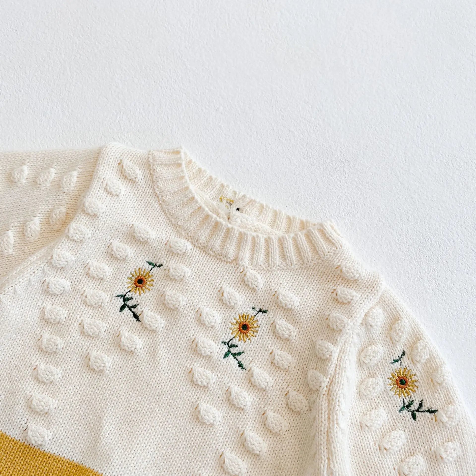 Spring Baby Girl Rompers Girl Long Sleeves Knit Sunflower Embroider Rompers Autumn Baby Girl Newborn Rompers Clothes